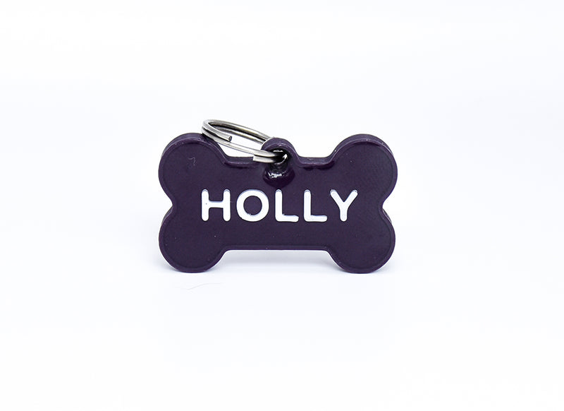 Say My Name - Custom Bone Shaped Name Tag - Aubergine